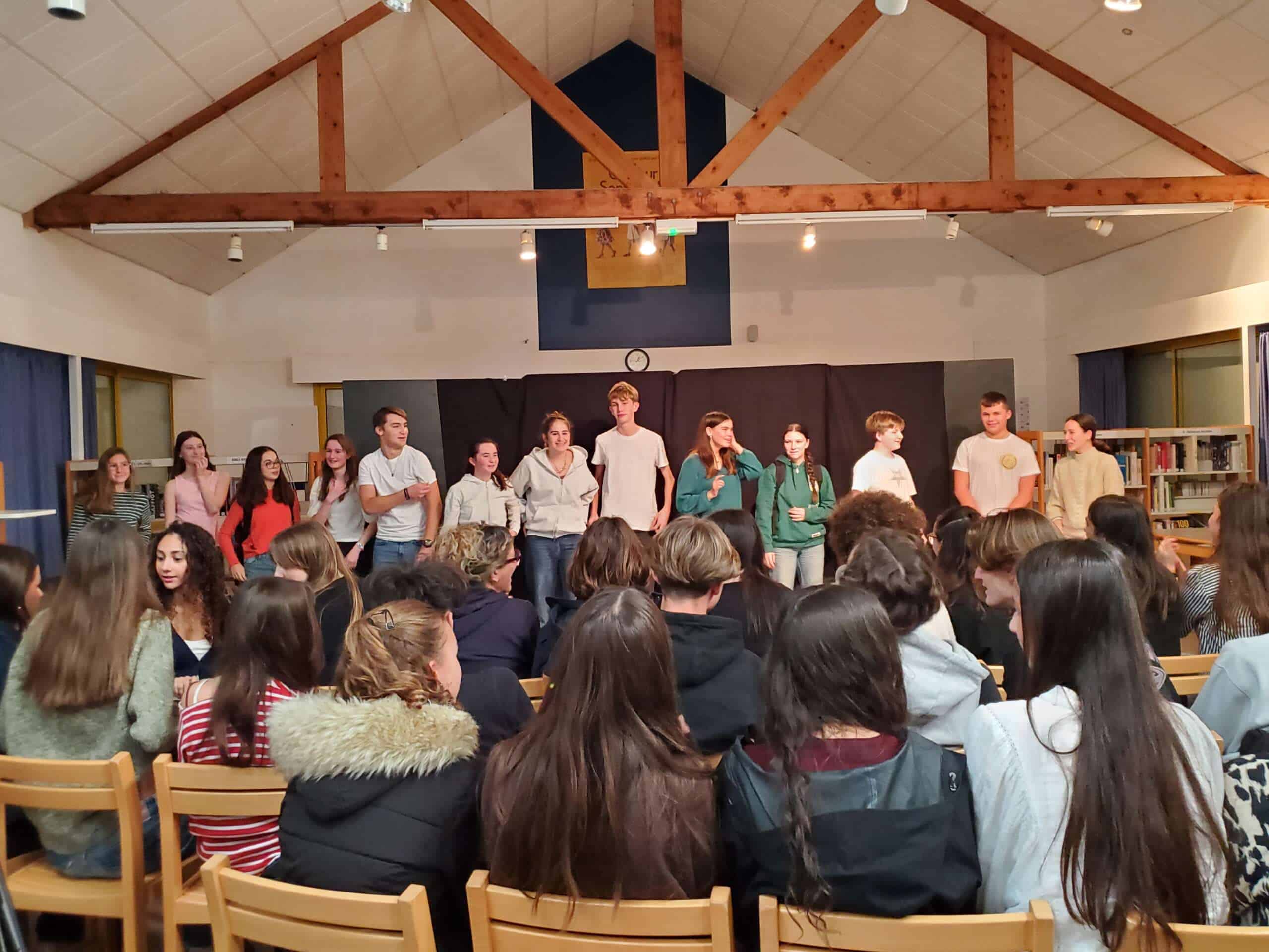 Prestation réussie ce lundi 24 novembre pour le groupe qui a présenté au CDI la petite pièce « Sac à dos » de Stéphane Jaubertie à un public venu nombreux.