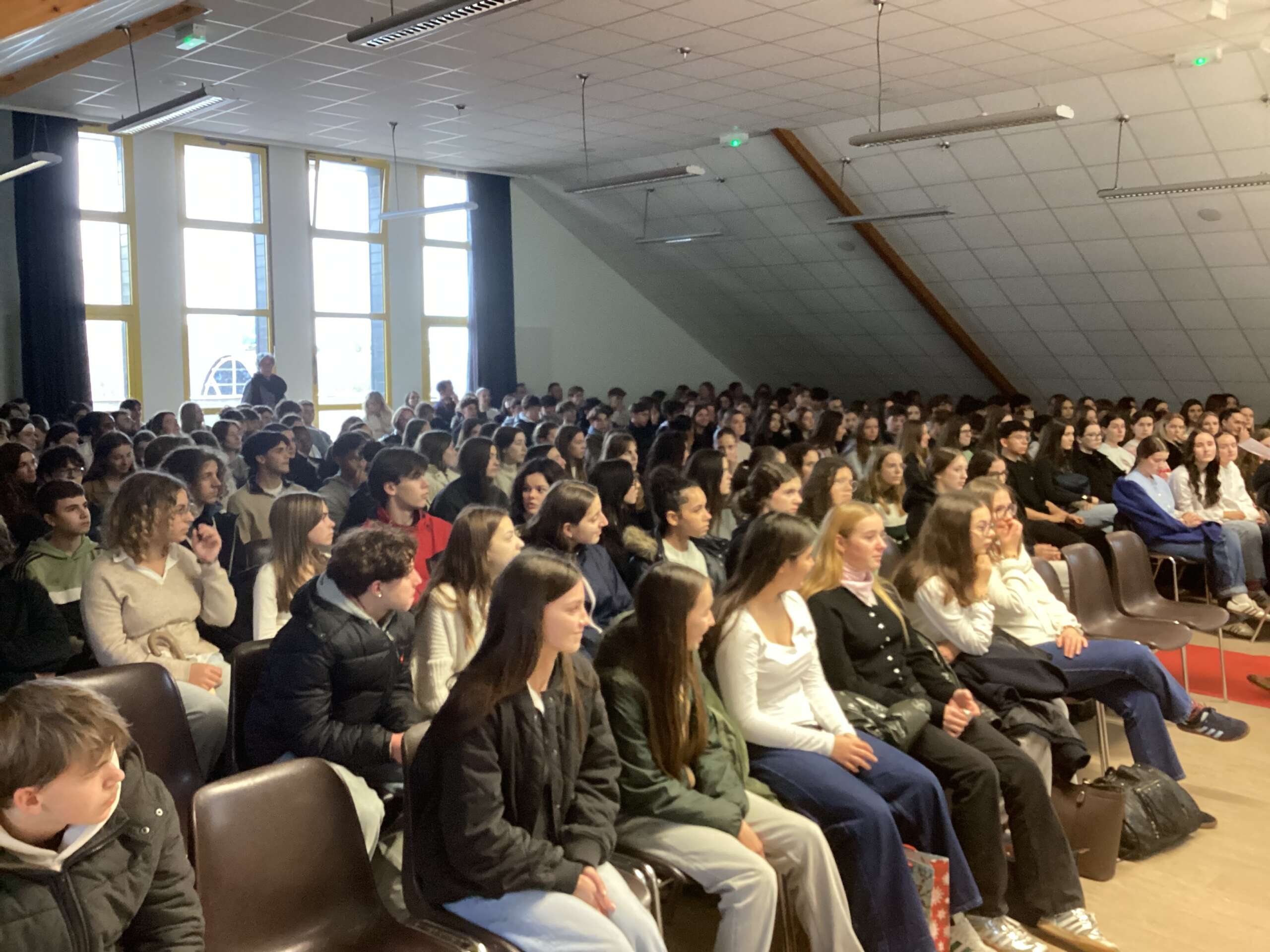 L’après-midi, l’ensemble des élèves du lycée s’est réuni à nouveau en salle Gwenrann pour écouter le témoignage de Halima.